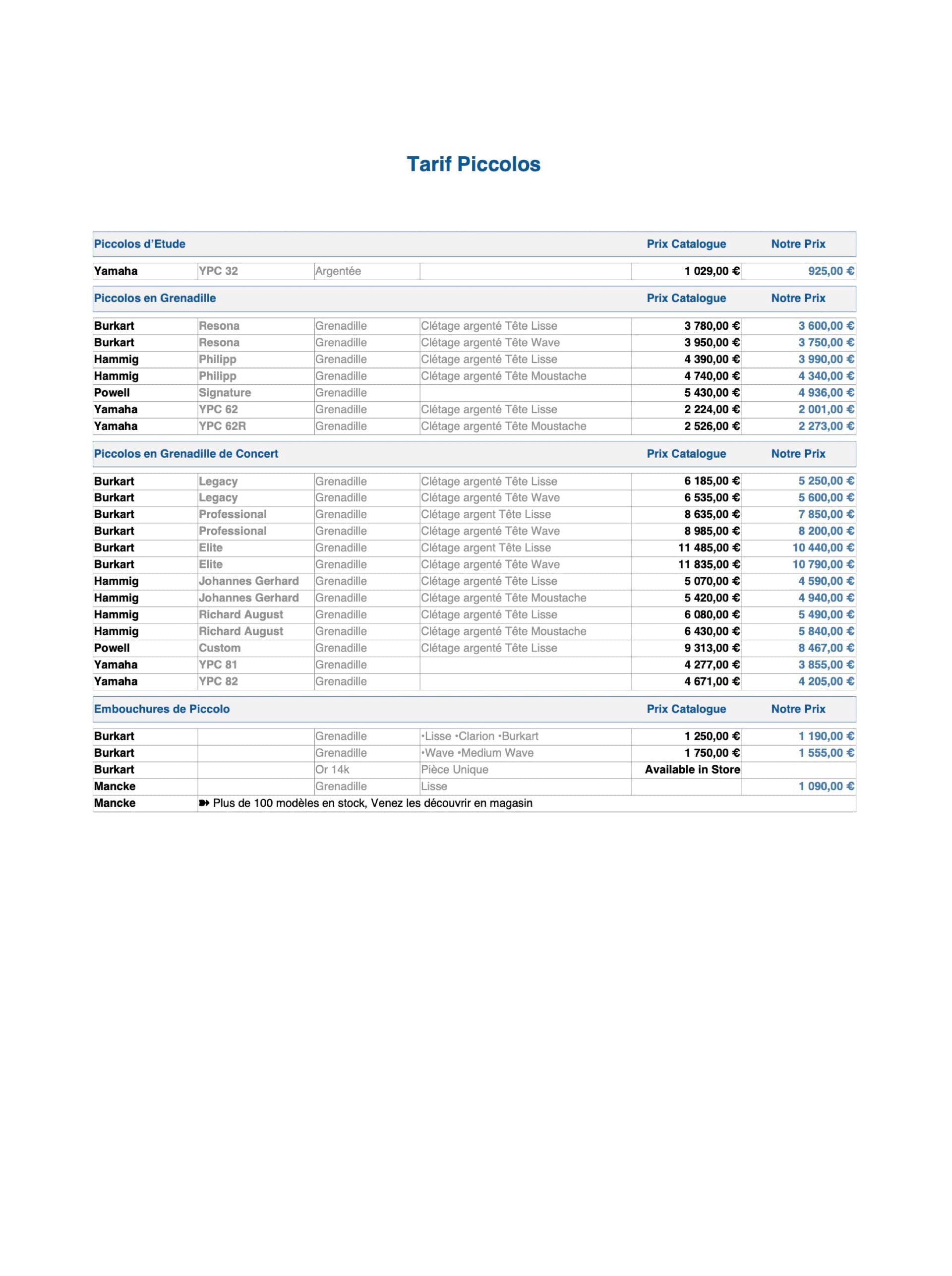 Tarif Piccolos