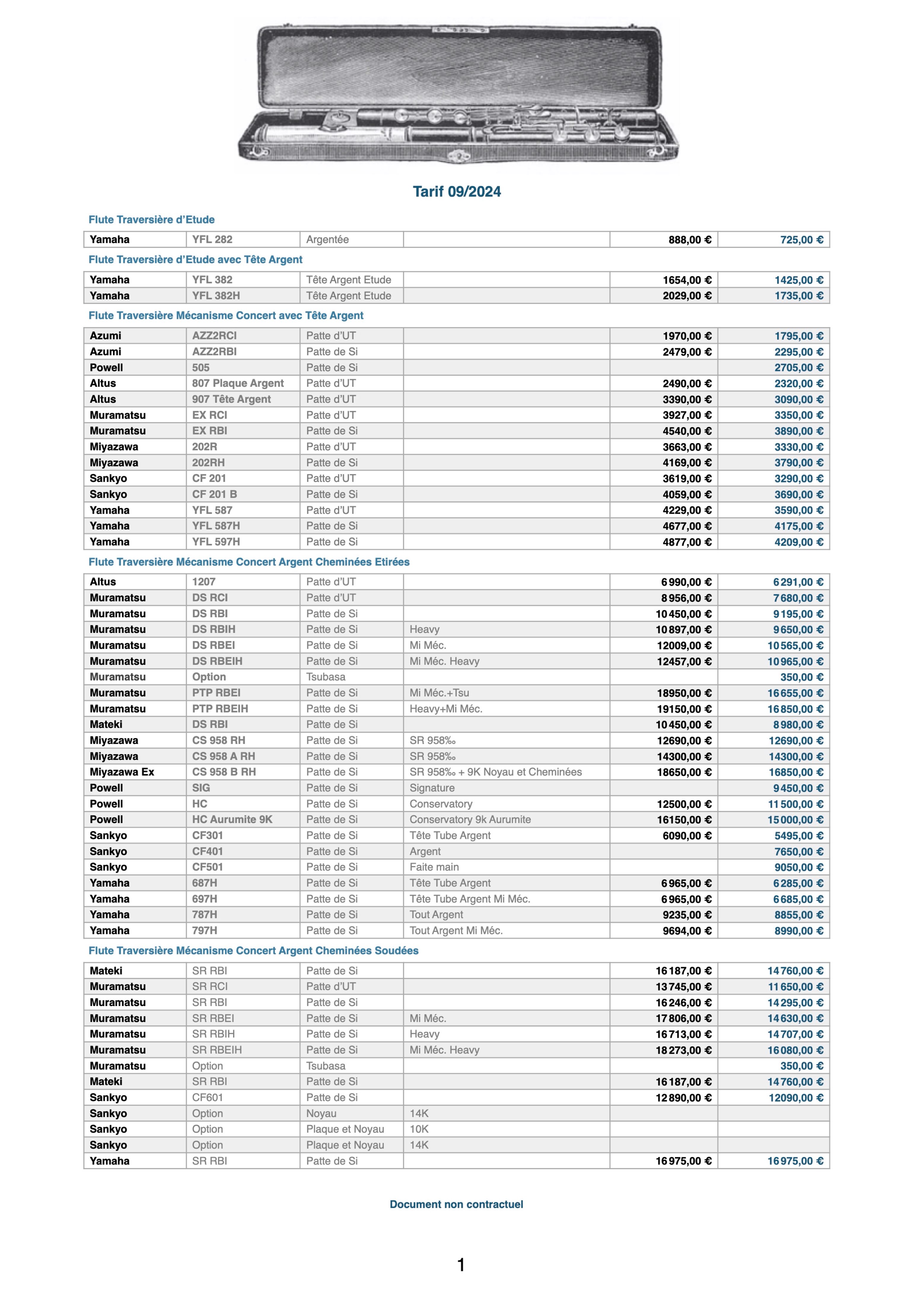Avec diligence, tout instrument neuf est vérifié et préparé dans notre atelier